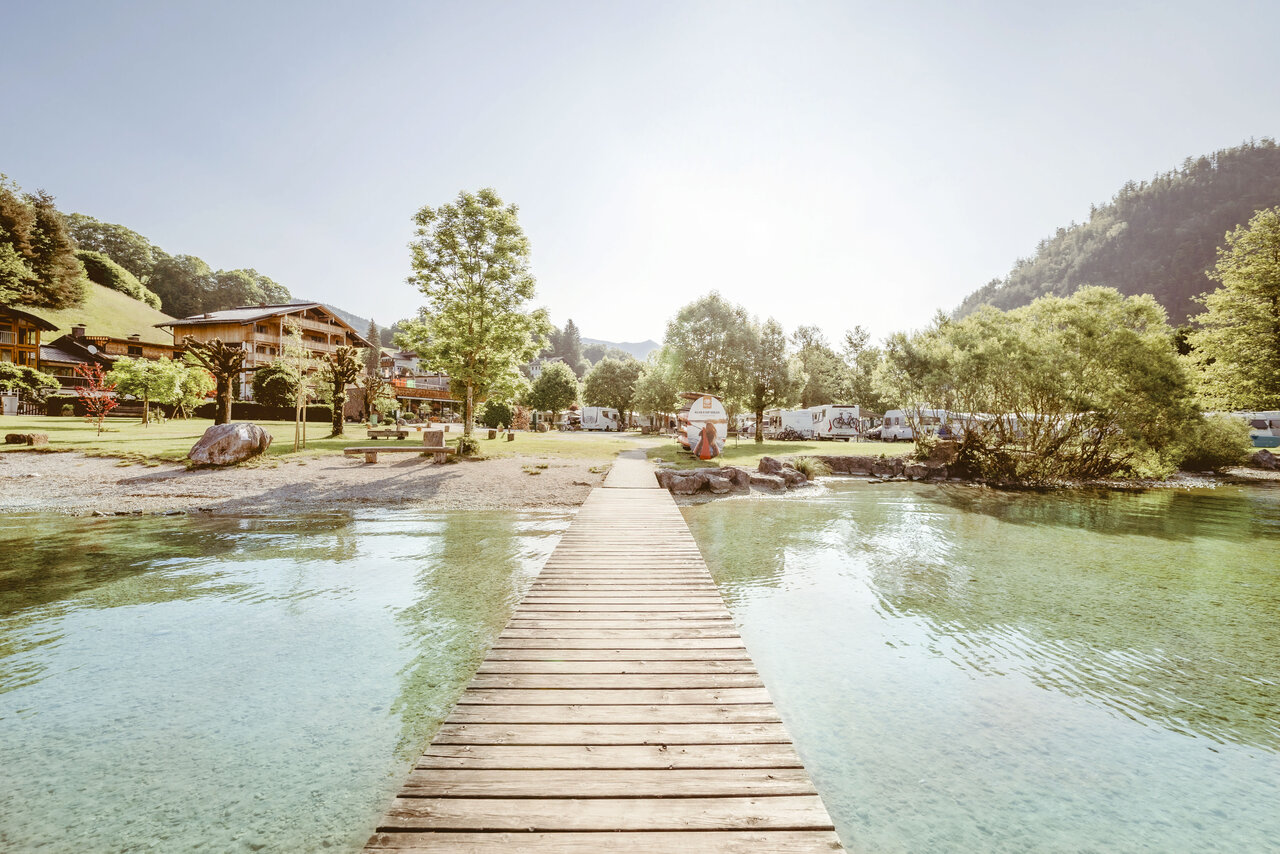 On our comfort 4* campsite, which is located in a private bay directly at the Wolfgangsee, you’ll find our spacious pitches (up to 100m ²) in the middle of a cozy environment with meadows and shady trees. The pitches with electricity, water and partial sewage connection, cable TV and fast free Wi-Fi provide comfort and the perfect feel-good atmosphere.
