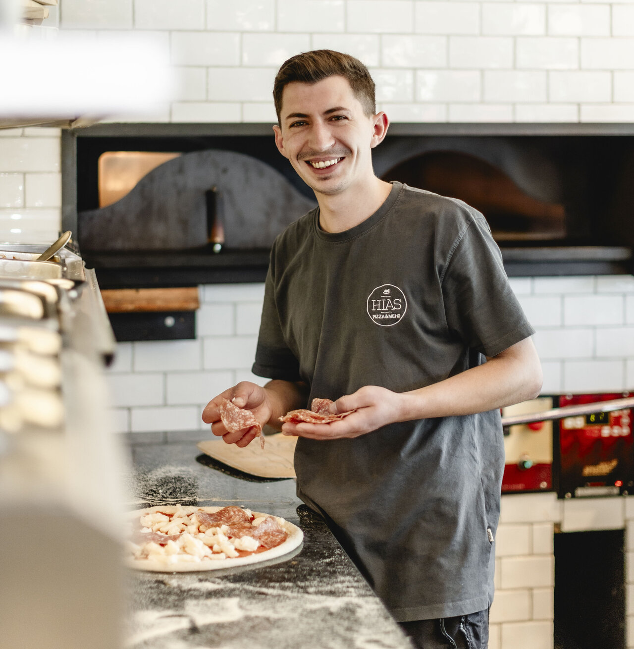 100% Real HandCraft! it's quite a Challenge to make the perfect pizza (especially how to throw them right)! That is why in the Hias real italian professionals are preparing your pizzas with a lot of fun at work.